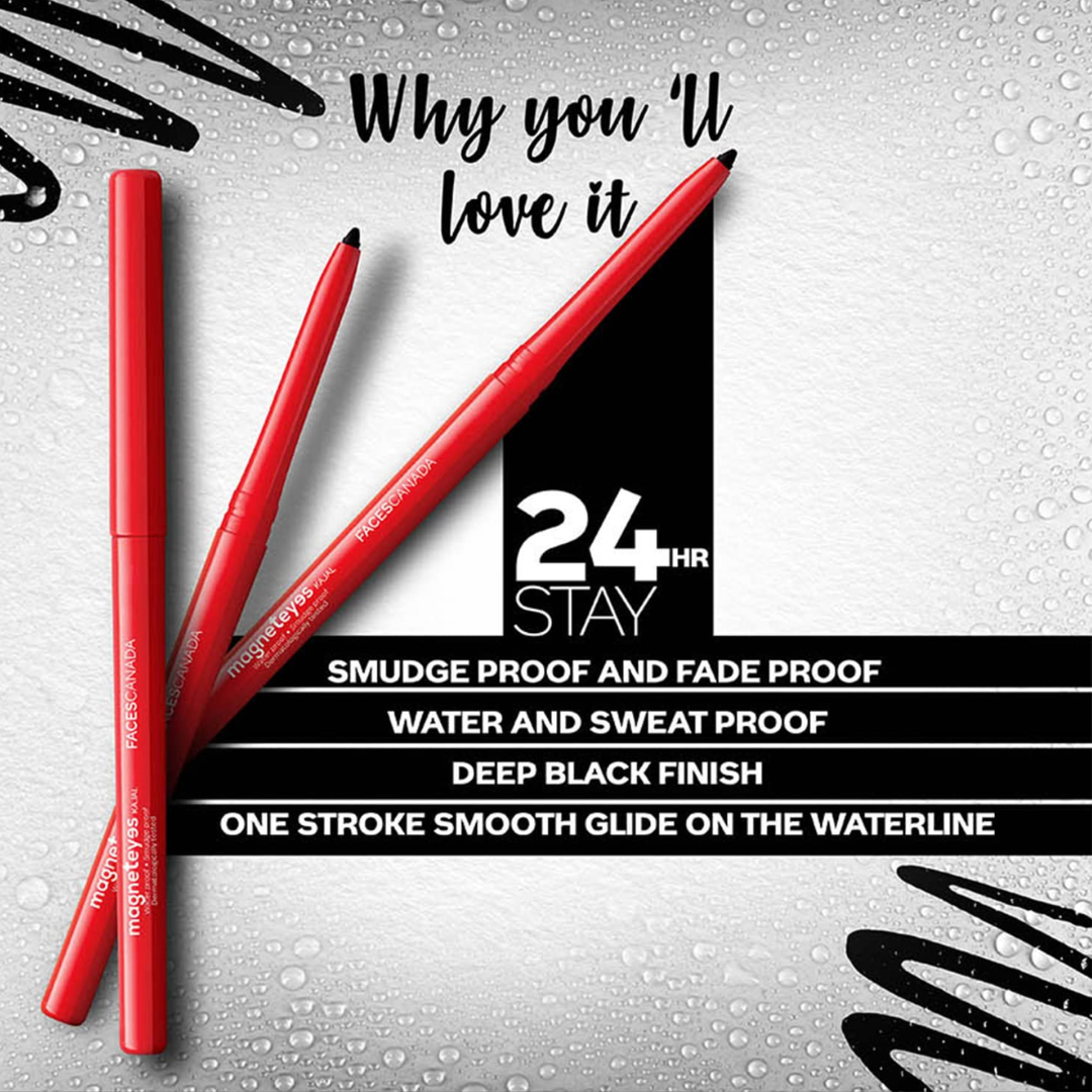 FACESCANADA FACES CANADA Magneteyes Range Trio Pack - Black, 13.35 g | Kajal + Eyeliner + Mascara | Lightweight | Long Lasting | Smooth Texture | Precise Application | Intense Color Payoff | Paraben Free